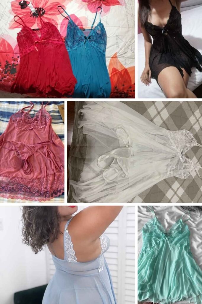 بيبي دول على شكل قميص نوم شوميز و سليب داخلي جي-سترينغ بنفس اللون، مجموعة لانجري تتكون من قميص نوم فضفاض قصير
